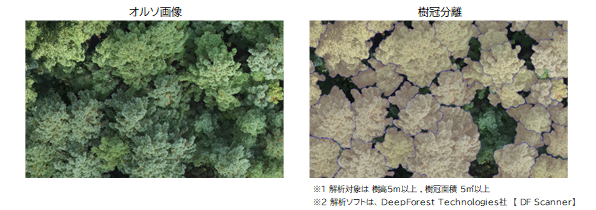 当社では庄原市の コウヨウザン林(1ha) において、広島県立総合技術研究所 林業技術センターさまと共同でオルソ画像を用いたAI樹種判別の精度を検証しました。
